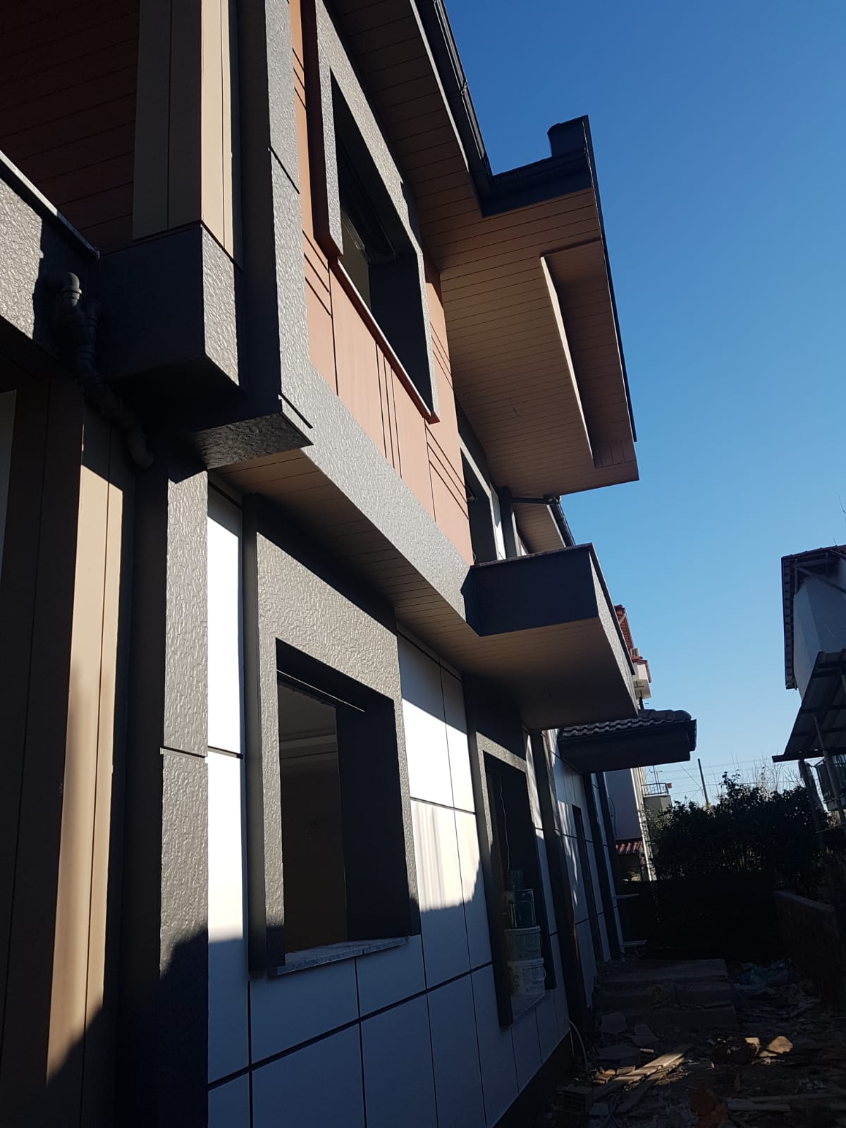 Villanın dış cephesinde kullandığımız alüminyum kompozit kaplama sistemleri, yapıya sadece modern ve şık bir görünüm kazandırmakla kalmıyor; aynı zamanda üstün ısı yalıtımı ve iklim şartlarına karşı yüksek dayanıklılık sağlıyor. Ortaca'nın güneşine ve mevsim geçişlerine tam uyumlu, bakım gerektirmeyen bir dış cephe çözümü sunduk.